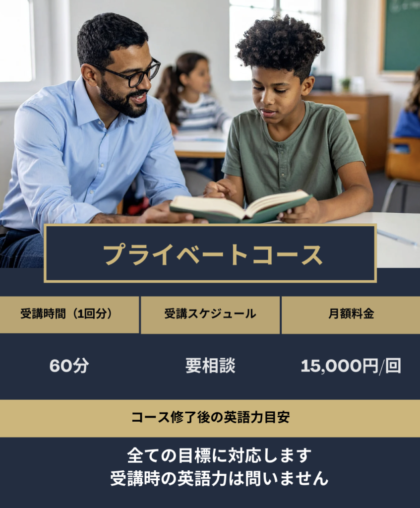 受講料とは別に初期費用として入会費 25,000円が必要です。プライベートコースに関しては、講師を指定することが可能です。教材費やその他の費用は一切かかりませんので、ご安心ください。また、受講授業以外での個別カウンセリングや学習支援も行なっていますので、担当講師にお問い合わせください。受講に関して質問がありましたら、初回カウンセリングをご予約ください。