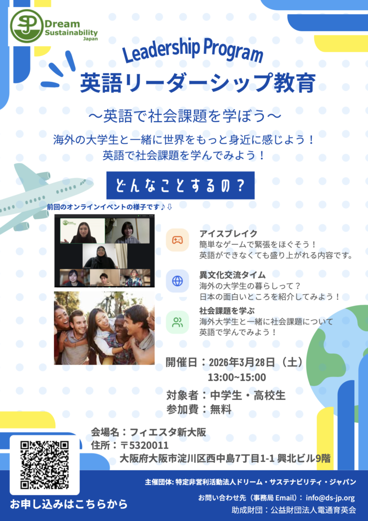 - 主催: 特定非営利活動法人ドリーム・サステナビリティ・ジャパン